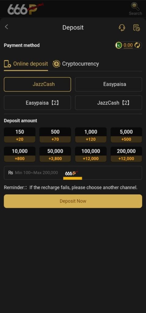 - Select a desired payment method like easy paisa or JazzCash, as they handle deposits smoothly.